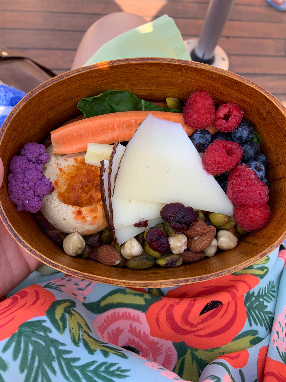 On our wine cruise, they provided little bento boxes of snacks! We ate berries, pistachios, and a few different kinds of cheeses. It was SO GOOD, and a reminder how delicious simple can be!
